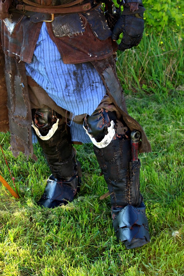 Weil meine Klamotten dem Zahn der Zeit langsam zum Opfer fielen hatte ich mich die letzten Wochen mal dazu durchgerungen doch mal wieder was an der Klamotte zu machen. Torso und Beinschienen wurden so gut es ging wieder genutzt und ausgeschlachtet aber gibt auch ein wing neues Zeug. Das weise Zeug an den Knien sind "Menschliche Unterkiefer" kann man leider schlecht erkennen auf den Bildern, hatte ich erst gesehen als ich die Klamotte schon wieder aus hatte beim Bilder machen.