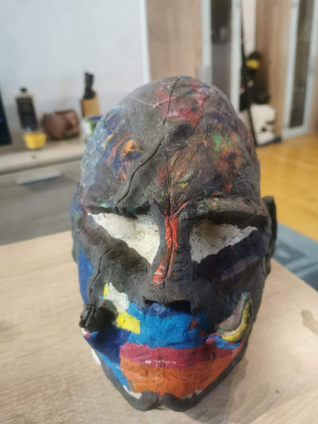 Es sieht streng genommen so aus als würdest du gerade erst anfangen daran zu arbeiten. Als hättest du jetzt die Knete drauf gepackt um nun ein Gesicht daraus zu machen.