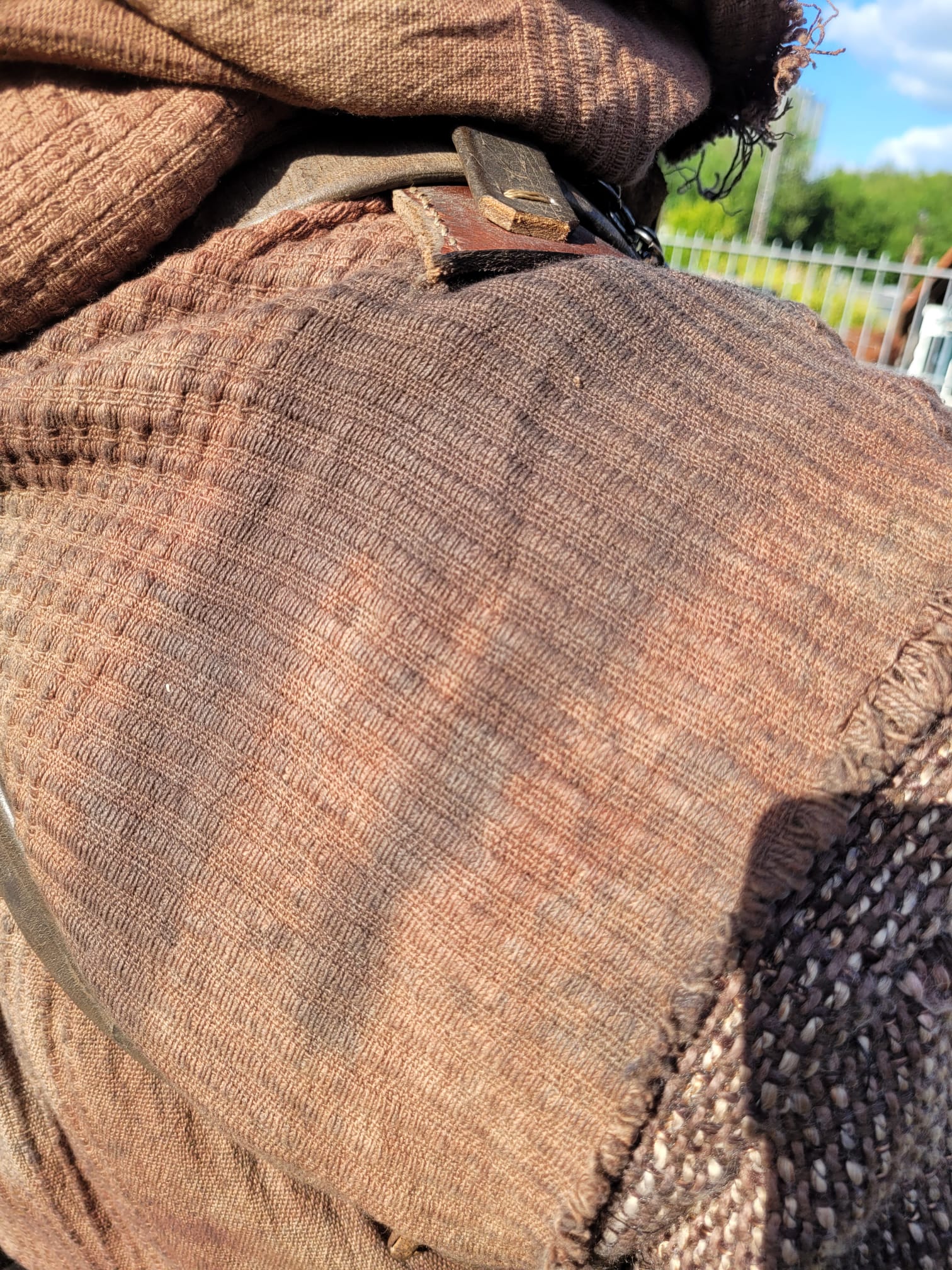 Gürtel begradigen, unnötigen Fummel ab, nieten raus und stattdessen mit Lederband nähen