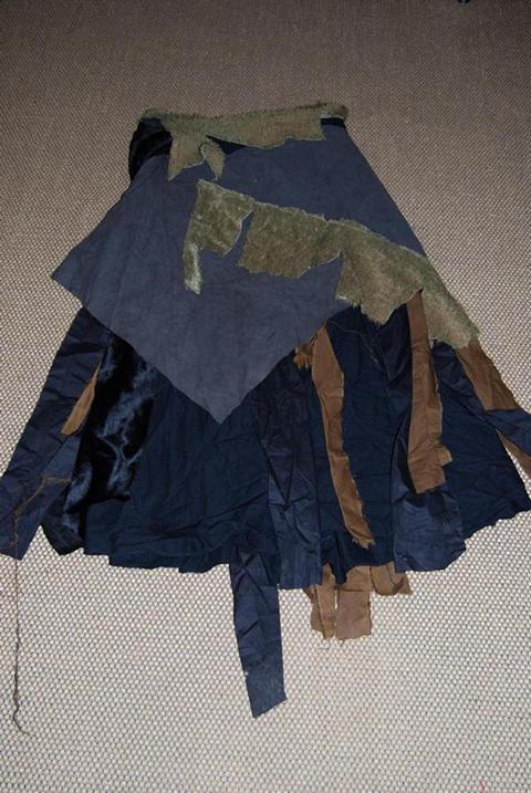So. Hier mal Zwischenstand. Hab mal weiter nen bisschen rumgebastelt. Das Oberteil besteht aus verschiedenen Lederstücken, die mit Lederbändern zusammengehalten werden. Bis auf den Rock ist noch nix verorkt. Besonders die Gugel sieht noch sehr blöd aus so. Unten drunter will ich 2 Shirts, vielleicht grün und braun ziehen und die dann nen bisschen zersägen und noch mit Schlammfarbe einsiffen. Hab heute schokobraune Abtönfarbe gekauft.