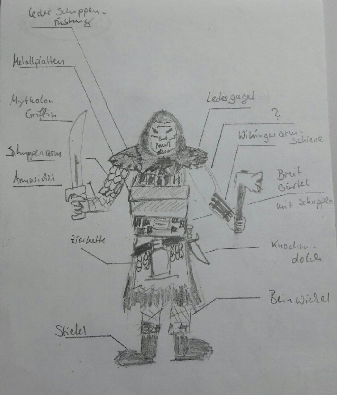 Ich hoffe der sieht mindestens genauso fertig aus wie auf dem Bild. Hier möchte ich noch Leder- und Metallschuppen aufnähen. ggf. müssen die Schnallen getauscht warden, wenn sie zu modern aussehen.