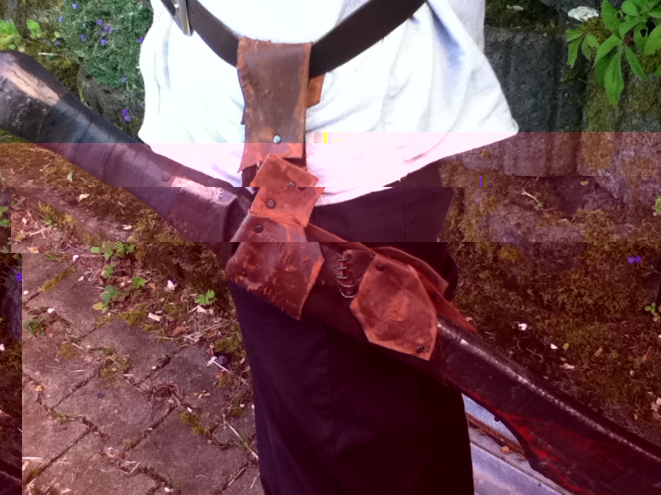 Hab mal meine Schwertscheide verbessert und verstärkt. Ans Ende kommt später noch, eine Rostige kette für besseren halt.