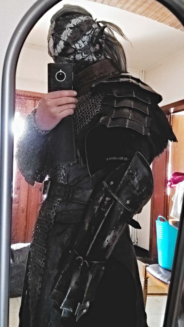 Il est important de cacher les coutures modernes. Peut-être avec de la laine ou tu coupes des bandes de cuir et tu les cous autour des coutures industrielles.
