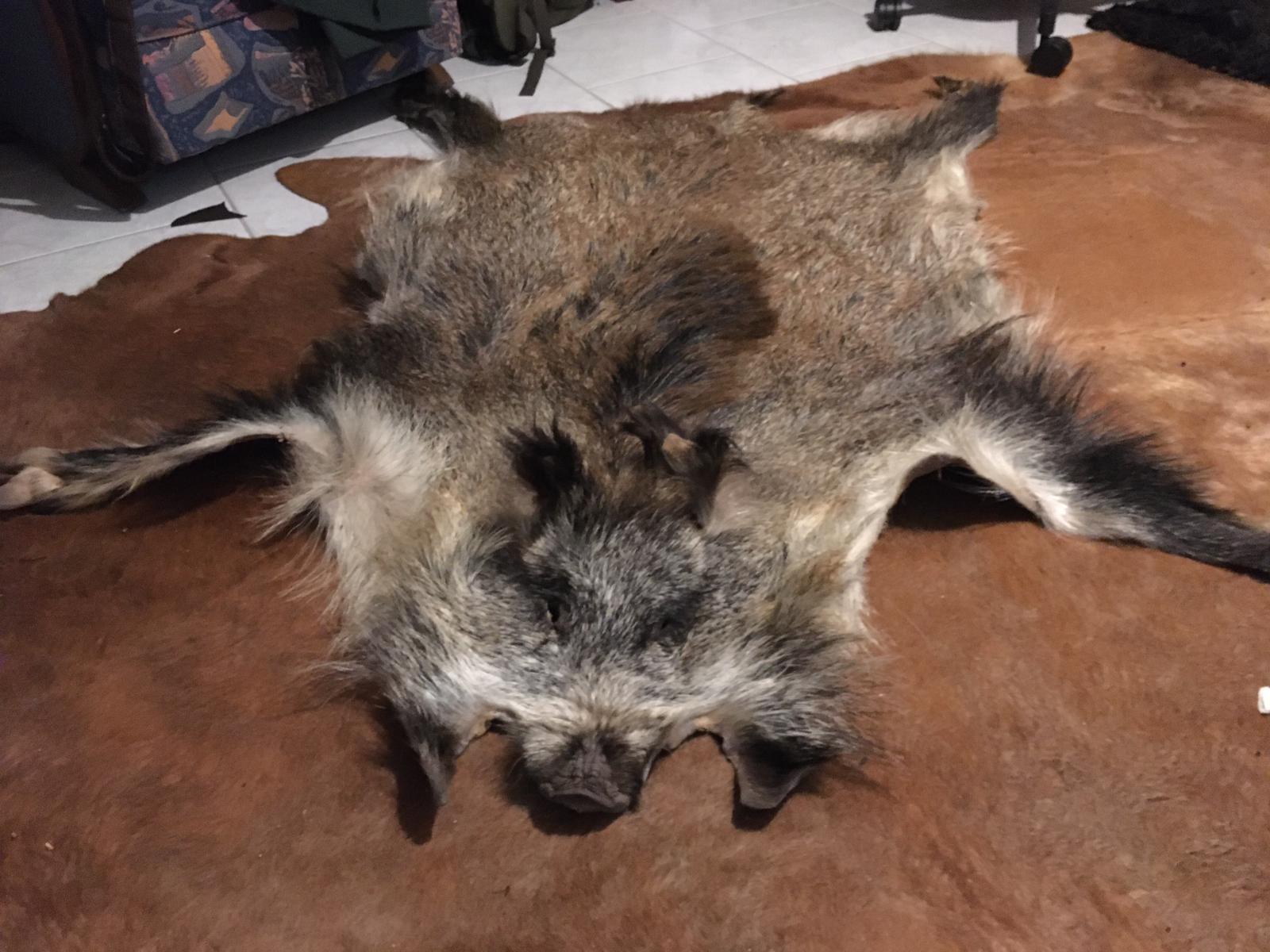 Die Wildsau werd ich wsl noch ein halbes Jahr draußen lassen müssen zum auslüften die stinkt noch so heftig nach sau das is Wahnsinn + so wie es aussieht ist die mit ieinem fett auf der fellseite eingeschmiert worden