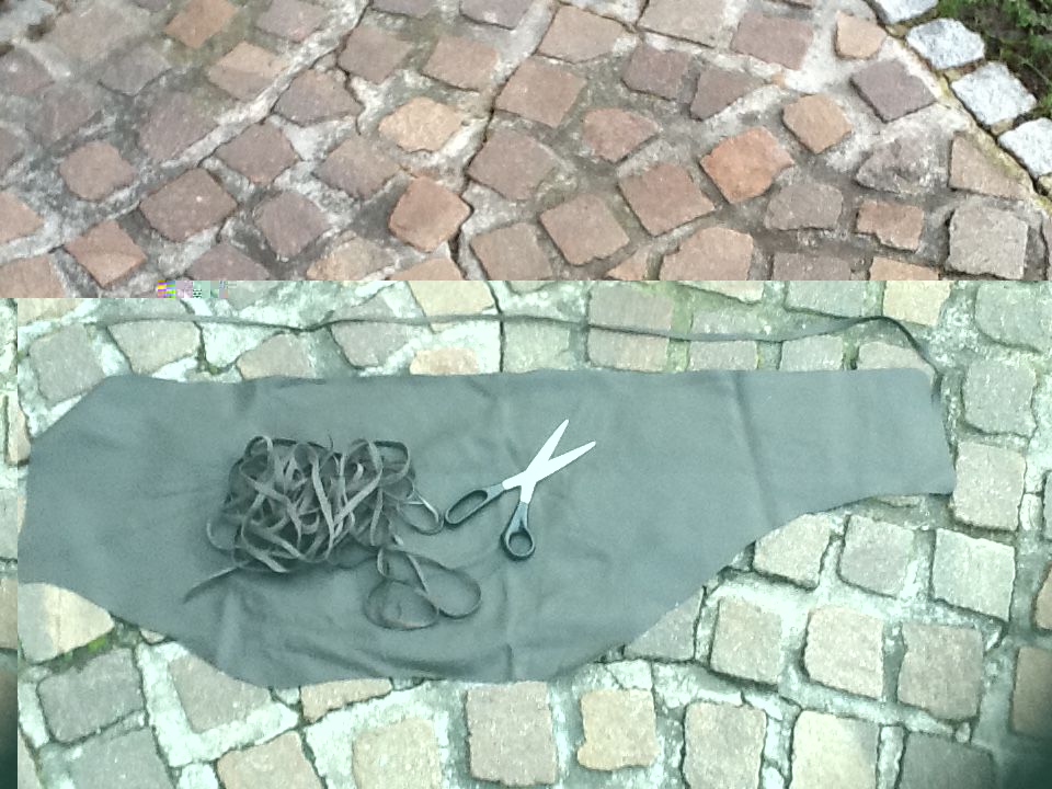 • Werkzeug: Maßband, Stift, 2 Gürtel als Schablone, Schere, Pflasterstein, Holzraspel, kleine Säge, Lochzange, Nähnadel, Wäscheklammern, Handschuhe /alles seit Jahren auf Halde