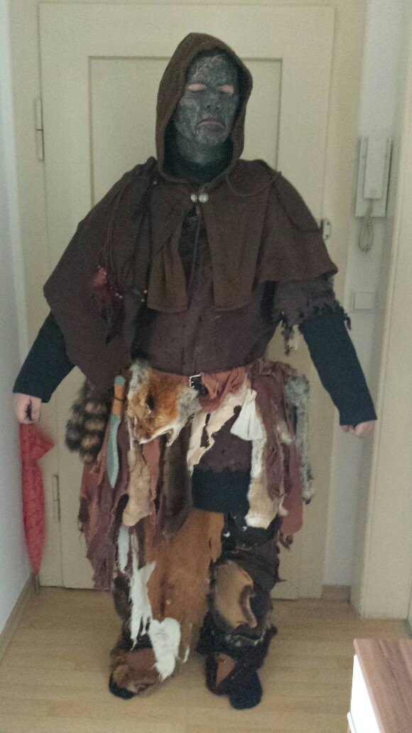Mit all dem Kram. Paar Bastel Anleitungen muss ich mir noch geben. Beine passt denk ich. Arme wäre wichtig. An der Schulter noch ummoden das Fell ab und die sau drunter. So nen fetzenrock mit ein zwei Lacken von der sau und dann sollte fast der Check im Sack sein hoff ich ^^