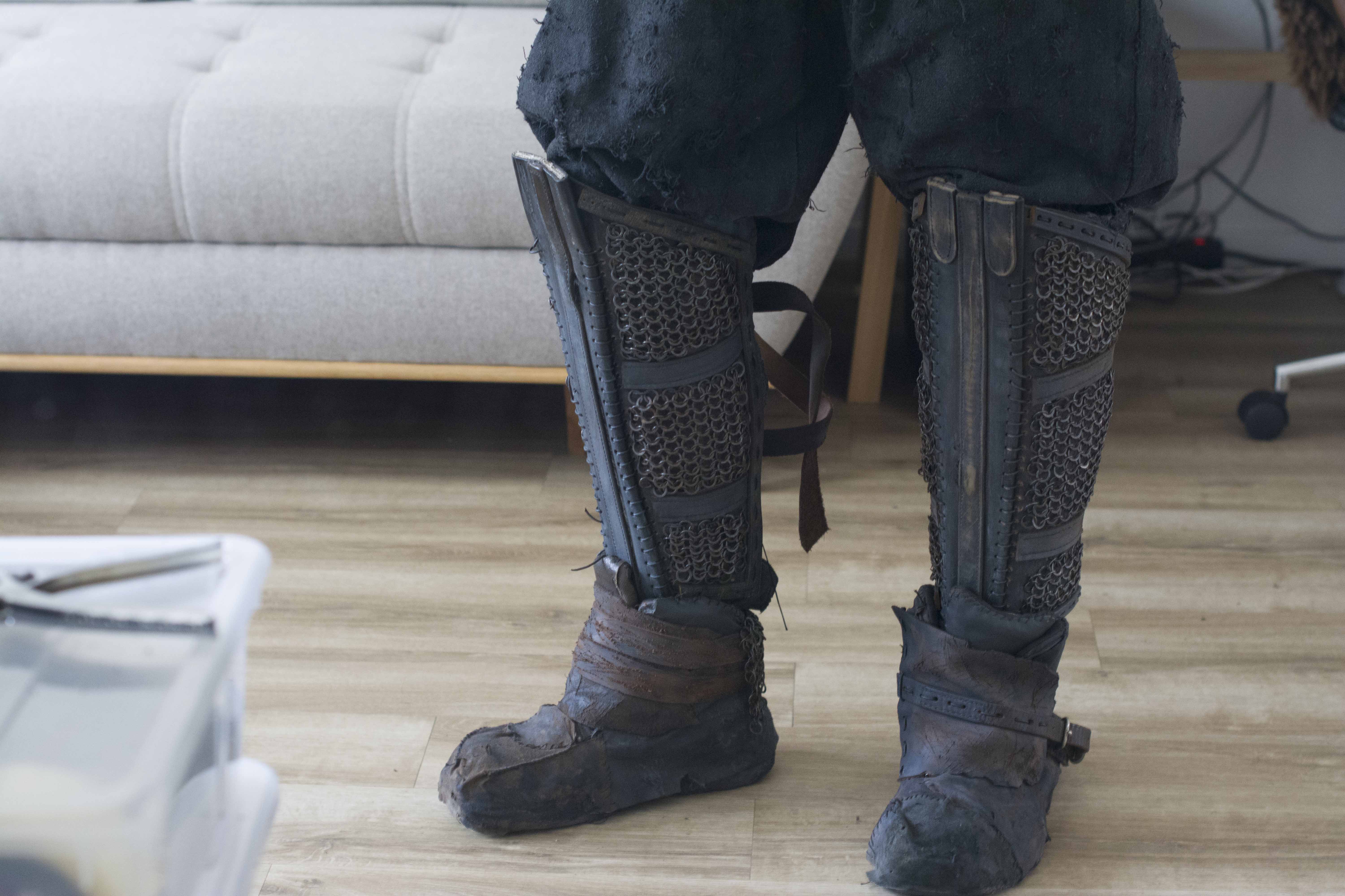 Da ich die Gamaschen jetzt gegen die neuen Beinschienen getauscht habe, brauchte ich noch passende Schuhe. Deswegen habe ich mich die Tage mal meine alten Arbeitsschuhe genommen und ein wenig aufgemotzt.